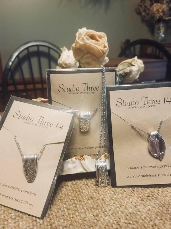 Welcome to Studio Three 14. We are so excited to share our newest creations with you. We work with Vintage and Antique Silverware to create the beautiful and useful items. We hope you will love our creations as much as we love creating them in our little studio here in Northern Maine.