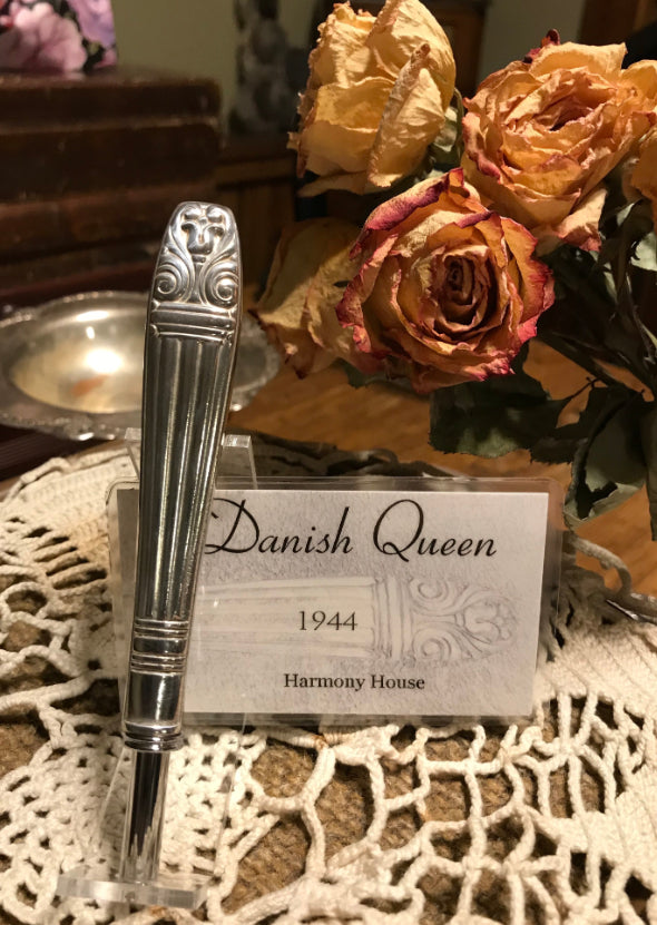 My husband and I make these gorgeous pens with hollow handled knives from vintage silverware sets. Just like the ones that Grandma had. These have been hand formed so they will hold a replaceable Parker style pen refill. Ink Joy pen inserts fit also. How great is that?